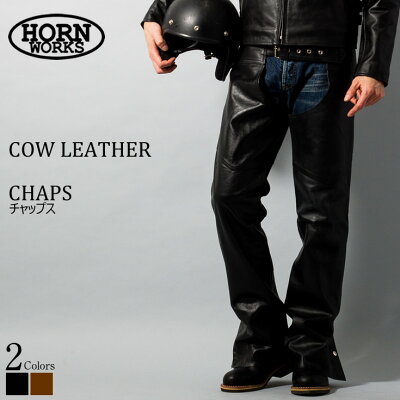 Horn Works 本革 チャップス メンズ ホーンワークス 3896 レザーパンツ 本革パンツ 本皮パンツ ライダースパンツ ライディングパンツ 本革ズボン ボトムス デニム ジーパン バイク用 レーシングパンツ ストレート ブーツカット 黒 ライダー バイカー スリム