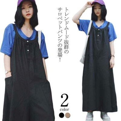 送料無料 サロペットパンツ ワイドパンツ スカーチョ ガウチョパンツ レディース オールインワン アジャスター付き ワイド とろみ パンツ オーバーオール サスペンダー 無地 春夏秋 ロング きれいめ シンプル 体形カバー 大きいサイズ